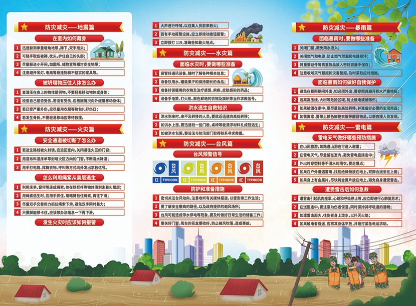 512日是我國(guó)第17個(gè)全國(guó)防災(zāi)減災(zāi)日。今年防災(zāi)減災(zāi)日主題是:“人人講安全、個(gè)個(gè)會(huì)應(yīng)急——排查身邊災(zāi)害隱患”,512日至18日是防災(zāi)減災(zāi)宣傳周。