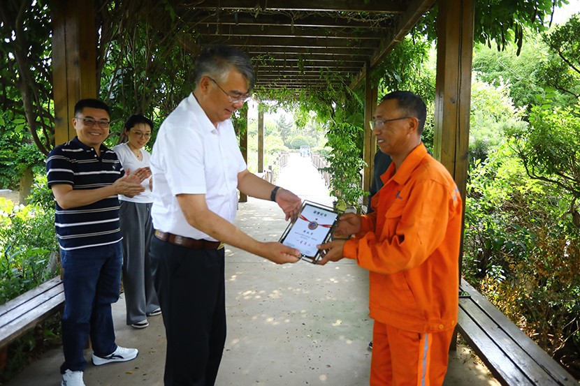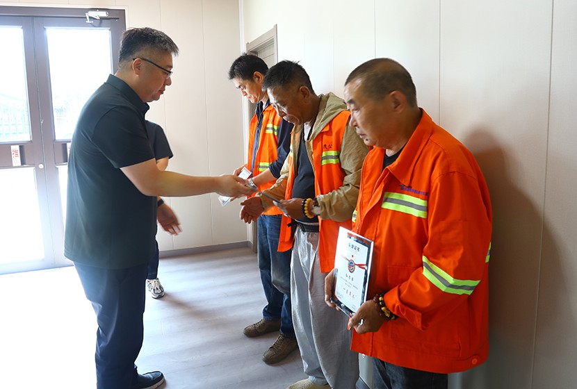 此次頒獎打破傳統(tǒng)集中表彰模式,將頒獎臺搬到生產(chǎn)建設(shè)最前沿,公司領(lǐng)導(dǎo)班子成員親自前往光伏安康驛站、創(chuàng)智綠園、大浦片區(qū)、云橋路施工現(xiàn)場、佟圩路施工現(xiàn)場、益豐園林園區(qū)6個一線點位,為獲獎員工頒發(fā)榮譽(yù)證書,并送上暖心祝福。當(dāng)公司領(lǐng)導(dǎo)將“星級員工”證書遞到員工手中時,獲獎?wù)唠y掩激動:“這份榮譽(yù)既是肯定,更是責(zé)任。我會繼續(xù)扎根基層,為臺北(華茂)貢獻(xiàn)全部力量!”