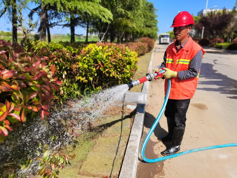 在各條基礎(chǔ)養(yǎng)護(hù)路段,綠化工人正在澆水,為花草樹(shù)木“解渴”。尤其是剛移植的苗木和剛出土的青苗,氣溫較高,容易造成脫水。通過(guò)適度澆水,保持土壤濕潤(rùn),促進(jìn)植物根系吸收土壤中的養(yǎng)分,有助于生長(zhǎng)和扎根,提高綠化成活率。