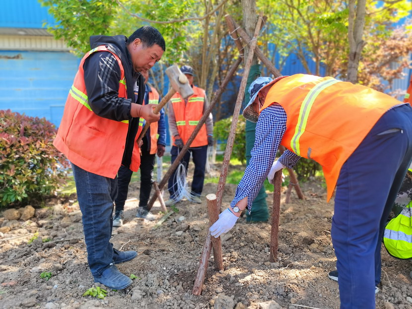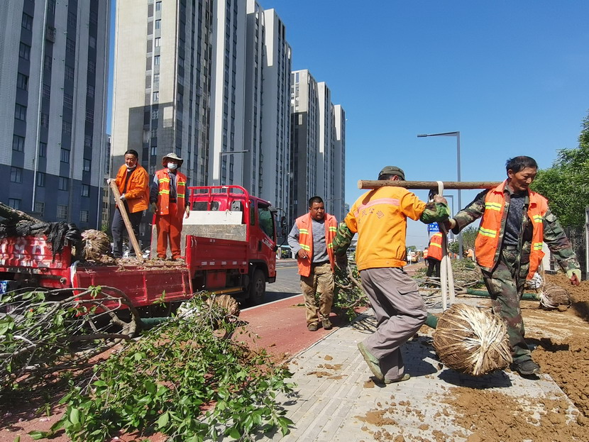 在中科院,只見(jiàn)工程車(chē)輛來(lái)來(lái)往往、橙色身影忙忙碌碌……到處都是一派繁忙、紅紅火火的景象。闖將孫玉虎,虎將金華穿梭在工程現(xiàn)場(chǎng),親自指揮調(diào)度綠化工程收尾工作。大家分工有序:定點(diǎn)劃線(xiàn)、搬運(yùn)苗木、栽植澆水、垃圾清理……有條不紊。中午時(shí)分,熾熱的陽(yáng)光照在臉上也是火辣辣的,忙碌了一上午的工人大汗淋漓,擰開(kāi)瓶蓋,咕嚕咕嚕喝了幾大口涼水,用袖子蹭了下額頭的汗,又干勁十足地投入到工作中。
