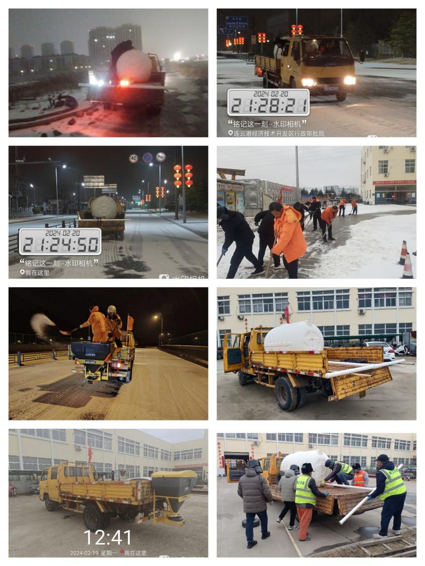 ? ? 20日傍晚夜色降臨后,一場凍雨如約而至,翔立分公司應急小分隊開著儲滿鈣液的拋灑車沿著花果山大道緩慢前行,將融雪神液均勻的拋灑在主干道上,保障著第二天來往車輛的順利通過。夜晚時分,呼嘯的北風伴隨著凍雨傾泄而來,氣溫驟降,室外溫度已速降十幾度滴水成冰,鈣液拋灑車內(nèi)溫度也已經(jīng)零度以后,翔立職工丁祥生、王愛軍、張成等人冒著低溫凍手凍腳的不便,熟練的操作著車輛一路拋灑保障每個路段都有融雪劑不結(jié)冰。