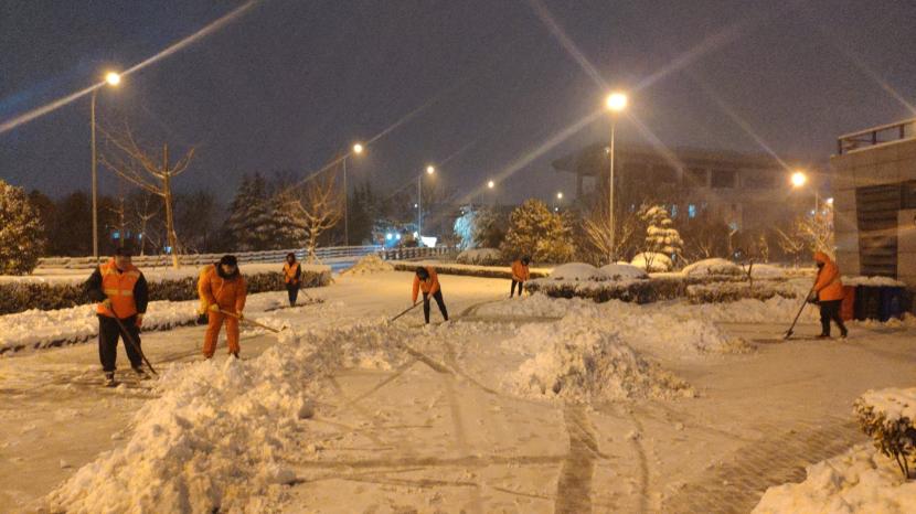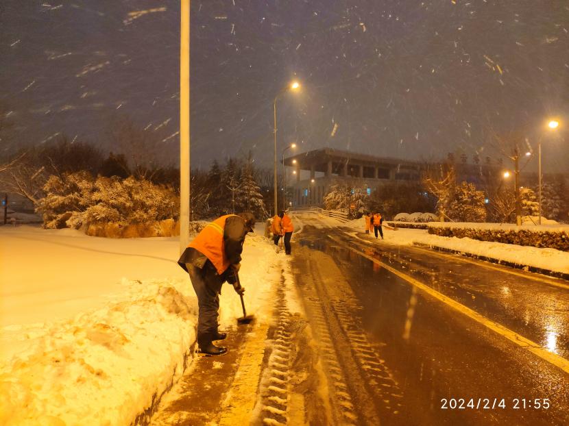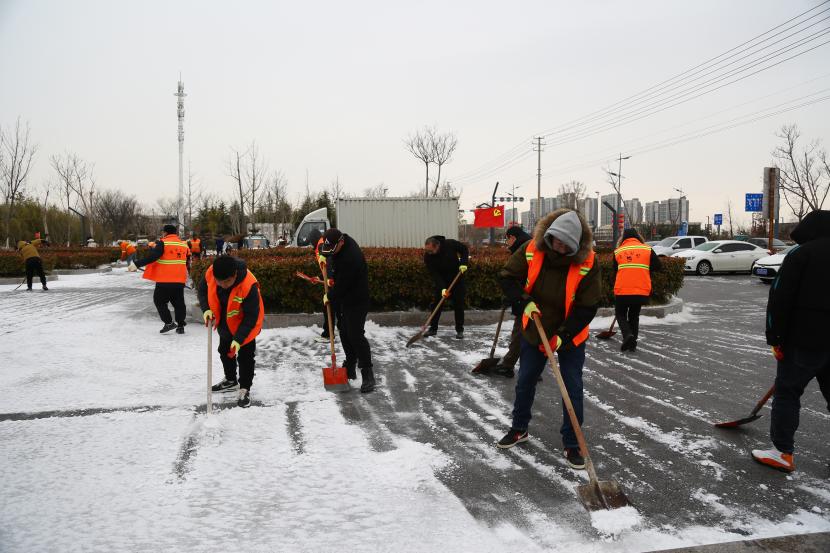 “不怕天寒地凍,就怕手腳不動(dòng)。”公司領(lǐng)導(dǎo)班子身先士卒,帶頭上陣,即是指揮員,也是戰(zhàn)斗員,黨員干部齊行動(dòng),不等不靠,全面開展轄區(qū)內(nèi)積雪清掃工作,主動(dòng)出擊、爭(zhēng)當(dāng)除雪保暢的“排頭兵”。充分發(fā)揮黨員先鋒模范作用和黨支部戰(zhàn)斗堡壘作用。大家團(tuán)結(jié)協(xié)作、干勁十足,掃的掃、鏟的鏟、推的推,干的熱火朝天。忙碌的身影映襯著紅色臉龐,在冬天凜冽的寒風(fēng)中構(gòu)成了一道靚麗的臺(tái)北華茂風(fēng)景線。
