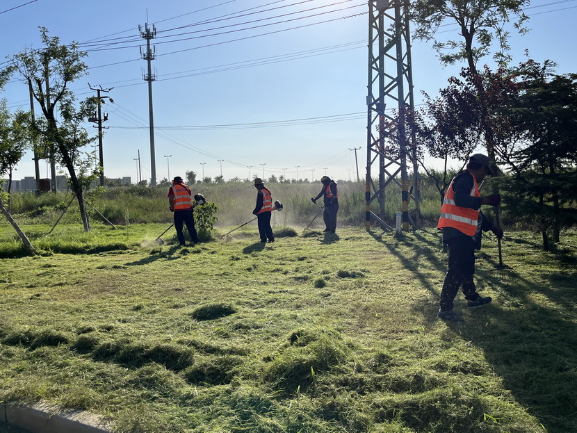 斗酷暑 陽(yáng)光很烈,他們很美。滾滾熱浪,高溫“烤”驗(yàn)。“炎”值爆表,室外溫度38℃,地表溫度飆升到50℃,城市像一個(gè)巨大的“蒸籠”,空調(diào)房里的人們望門止步。但是,有一群與太陽(yáng)肩并肩不服“暑”的鐵“汗”子,他們用黝黑皮膚擦亮奮斗的底色。你可以在小區(qū)里看到他們頭頂驕陽(yáng)找路徑、穿網(wǎng)線、做網(wǎng)絡(luò);可以在東方大道上看到他們冒著紫外線的灼烤,忙著栽種草苗、除草澆水;可以在大浦路上看到他們腳踩滾燙瀝青,忙著轉(zhuǎn)移交通桿;可以在花果山大道上看到他們汗流浹背,背著割灌機(jī)忙著打草。一件件浸透汗?jié)n的工裝,一句句樸實(shí)無華的話語(yǔ),一份份汗水淋漓的擔(dān)當(dāng)……翔立每位員工都在發(fā)揚(yáng)“特別能吃苦、特別能戰(zhàn)斗、特別能奉獻(xiàn)”的鐵軍精神,攥緊拳頭,埋頭苦干。