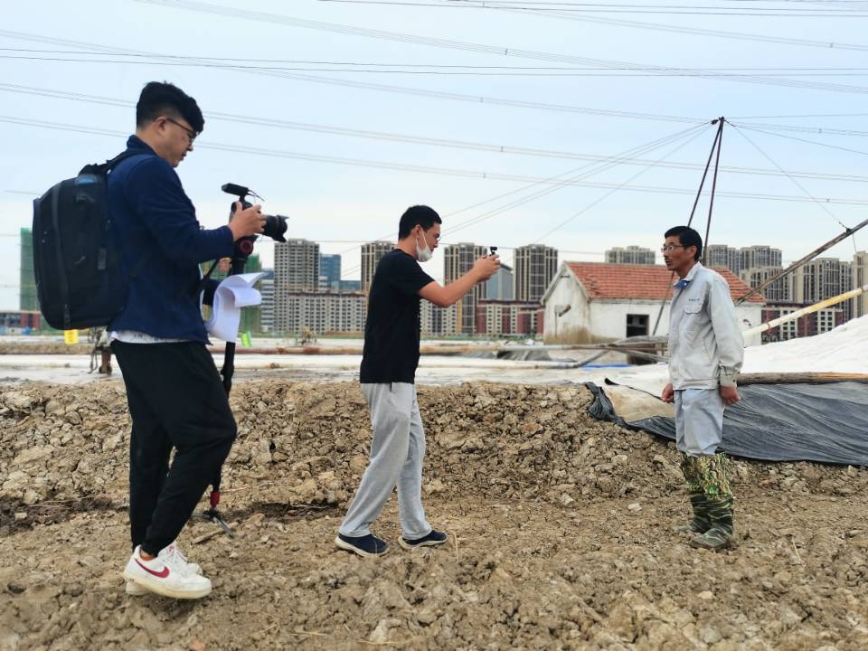 在灘頭一線,采訪組一路走,一路問(wèn),與陪同人員了解鹽場(chǎng)歷史,和作業(yè)人員溝通制鹽工藝,時(shí)不時(shí)的拿起單反相機(jī),咔咔咔的按著快門,以不同視角的圖片、視頻等宣傳媒介記錄下鹽場(chǎng)最生動(dòng)、最有特色的畫面。