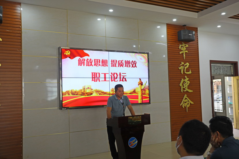 ? ? ? ? ?為深入推進“解放思想·提質(zhì)增效”主題大討論活動,激發(fā)全體干群切實抬升工作標(biāo)桿,提升工作質(zhì)效,9月1日,臺北投資公司舉辦“解放思想·提質(zhì)增效”主題大討論職工論壇。來自基層單位的班組長、職工代表及部分管理人員參加論壇,積極踴躍地交流了在新形勢下做好當(dāng)前工作的思路和打算,內(nèi)容豐富,氣氛熱烈,起到了解放思想、啟迪思維,互相學(xué)習(xí)、互相促進的良好效果。