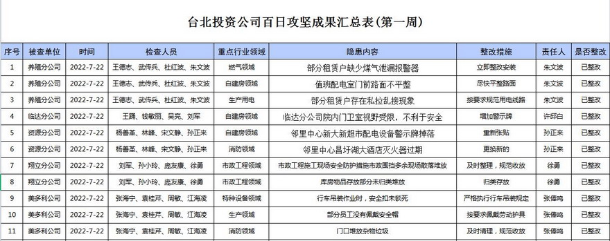 安全生產(chǎn)百日攻堅(jiān)成果(第一周)