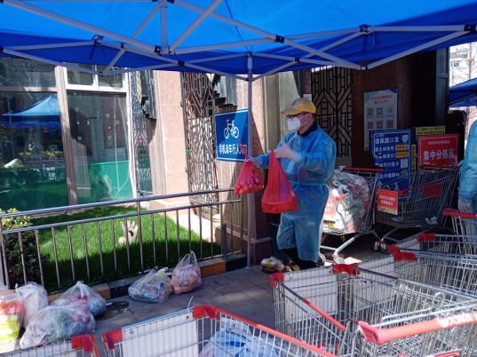 “大爺,您好,拿什么菜?”早上8點,海州防疫臨時黨支部的江海凌同志開始一天的志愿服務(wù)。不過,他今天“改行”了,不再是信息采集員,而是化身鄰居菜籃子的“守護(hù)者”。