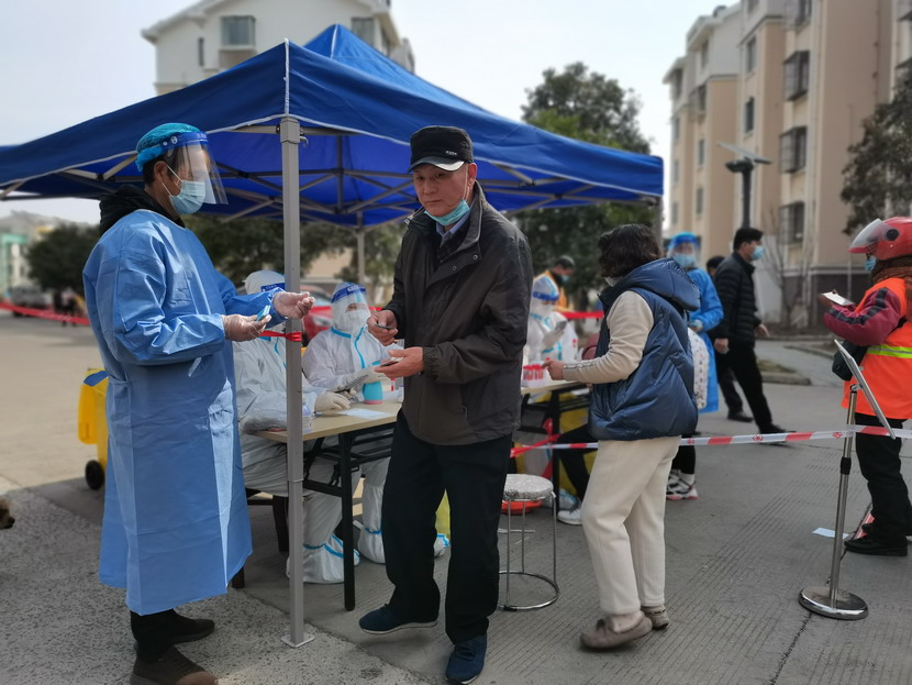 夜里9點(diǎn)40分,昌圩臨時(shí)黨支部抗疫工作群里信息不斷:“同志們,剛接社區(qū)緊急通知,明天要進(jìn)行第五輪核酸檢測(cè),還沒(méi)有睡的同志們請(qǐng)到社區(qū)緊急集合,又增加兩個(gè)檢測(cè)點(diǎn),抓緊去建點(diǎn)擺臺(tái)。” “霍正鋼收到、蘇玲收到、秦黎明收到、朱文健收到、邱榮濱收到、于洪亮收到……”,“好,晚上溫度比較低,請(qǐng)大家穿暖和一點(diǎn),10點(diǎn)社區(qū)準(zhǔn)時(shí)集合?!辈着R時(shí)黨支部書記李明發(fā)完最后一條信息,穿好馬甲,戴上口罩,出發(fā)下樓。