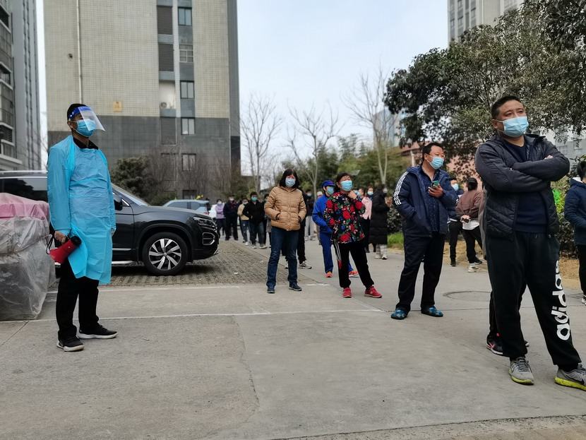 李明:“請(qǐng)大家站好,保持一米線的距離,很快就排到了,不要急躁?!?/span>