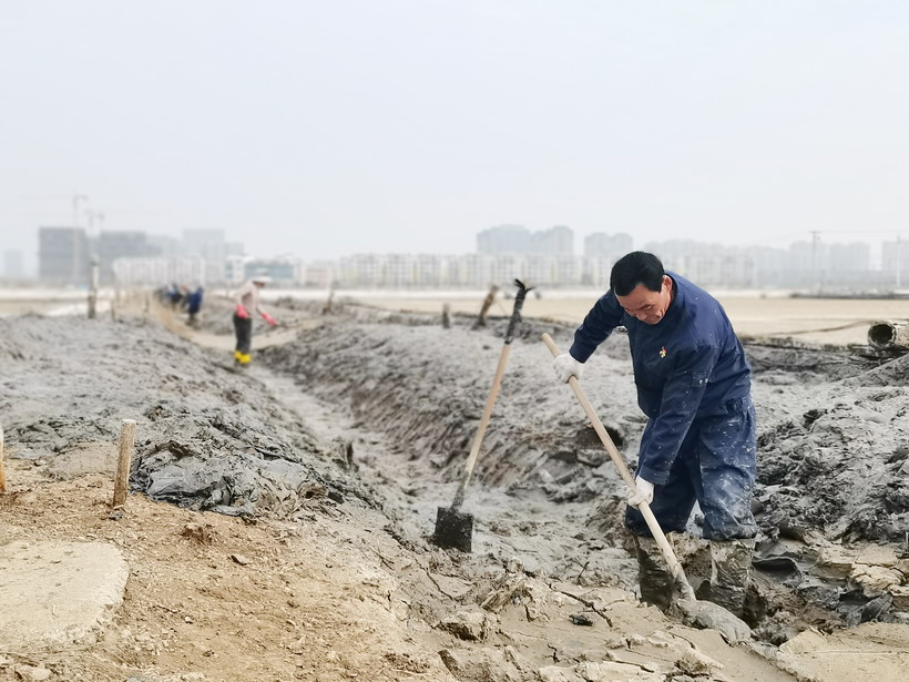 近日,迎著初春的風(fēng)走進昌圩班組,在印有醒目“開局就是決戰(zhàn),起步就是沖刺”的橫幅下,退休黨員朱春年正帶領(lǐng)職工撩溝做堰,更換結(jié)晶池塑料布等。兩鬢斑白的朱組長士氣毫不減當(dāng)年,一邊忙一邊說:“昌圩結(jié)晶池因灘工撂荒較嚴(yán)重,冬準(zhǔn)工程量大,為了能完成公司冬準(zhǔn)計劃,我們把海濱、程圩職工都抽調(diào)過來了,過年都在干活,目前這邊1000畝結(jié)晶池已經(jīng)完成,春節(jié)期間灌了一部分,現(xiàn)在天時好,我們得抓緊時間,早灌池,早落鹽!你們自己轉(zhuǎn)轉(zhuǎn)、看看吧,我實在太忙了····”。