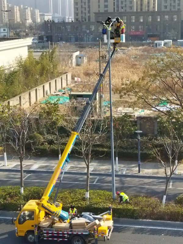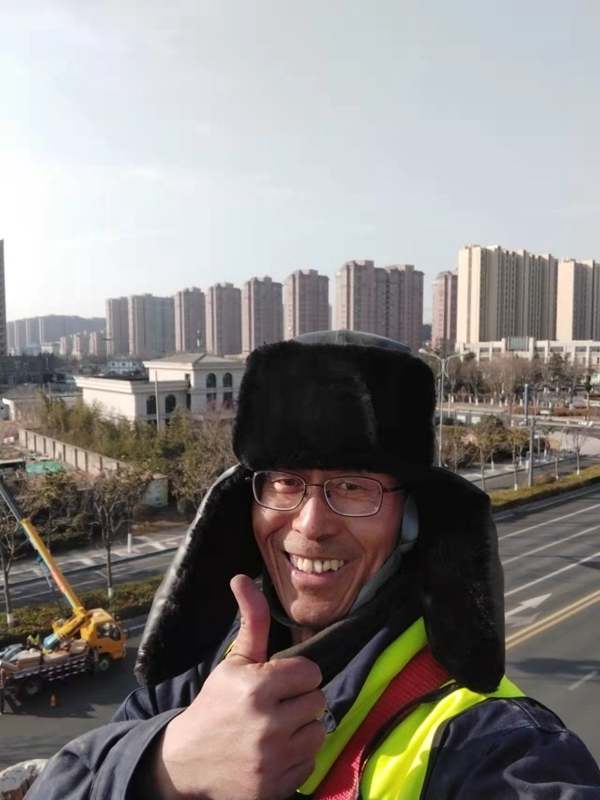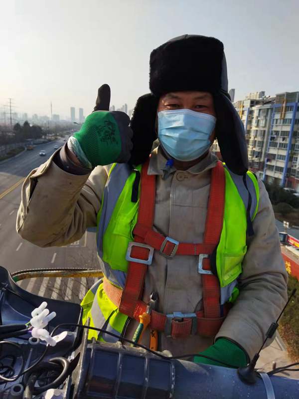 ?該項城市照明提升工程工程量大(約6500套路燈),工期緊。為了趕時間進度,翔立“鐵軍”們由12月27開始施工,日以繼夜、馬不停蹄的連續(xù)奮戰(zhàn)在工程一線,沒有一個人掉隊,沒人喊苦叫累,個個都像鉚足了勁的“小牯?!?。肩帶《安全員》紅袖章的工程負責(zé)人喬以成騎著電瓶車不時地在海寧大道上來回穿梭著,“王師傅,高空作業(yè)車四條支撐臂必須支撐平穩(wěn)牢固后再提升哦”,“段青春,把前方施工的警示牌擺在車輛后面,還有道路安全錐桶一定要將作業(yè)區(qū)域圍起來,與后面來車方向保持安全距離?!痹谑袇^(qū)人流密集的道路上同時有5臺登高作業(yè)車分區(qū)域高空作業(yè)的情況下,他最放心不下,畢竟是高空作業(yè)!為了防止高空墜落,登高施工操作人員全部按要求規(guī)范佩戴安全帶、系好安全繩、絕緣鞋、防寒安全帽、警示馬甲一應(yīng)俱全,武裝整齊。為防高空落物,作業(yè)車吊籃內(nèi)使用的工具全部系上“失手繩”,安全施工是必要的前提,有措施,有辦法,畢竟千條萬條,安全才是第一條!