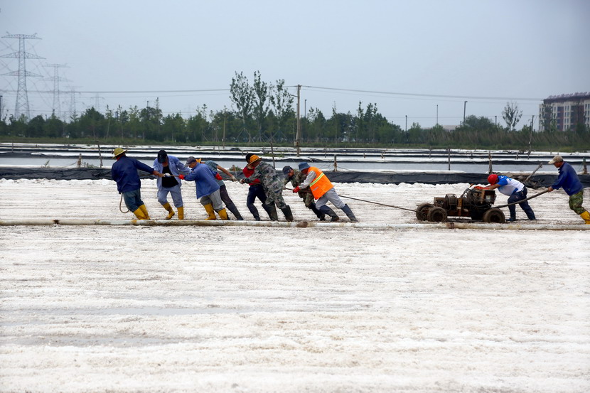 今年以來,針對(duì)政府征地、堿廠關(guān)停的現(xiàn)實(shí),投資公司積極推進(jìn)生產(chǎn)方式變革,打破一年兩季固有收鹽模式,實(shí)現(xiàn)原鹽隨用隨收。在海州灣先鋒東灘扒鹽一線,王德志仔細(xì)觀看了作業(yè)情況,現(xiàn)場收鹽職工正在進(jìn)行挪機(jī)工作。