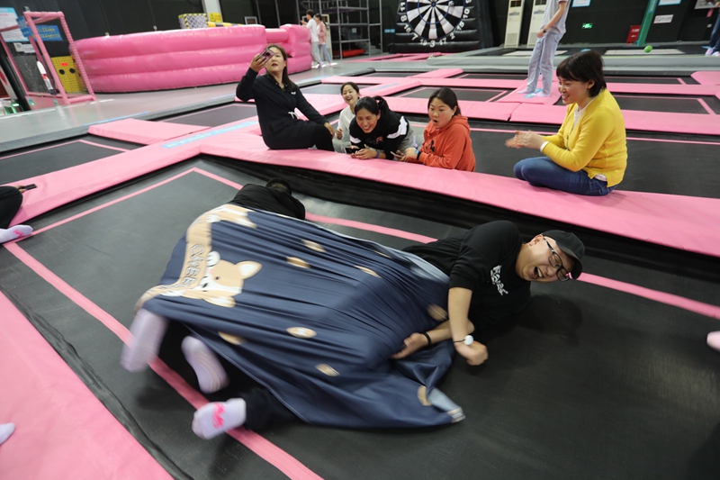 團(tuán)建活動中,兩個隊(duì)伍的成員通過頭腦風(fēng)暴為自己的隊(duì)伍分別取名為“黛玉隊(duì)”和“寶釵隊(duì)”,分別由看起來比較柔軟實(shí)際也很柔軟的王茜和看起來很有力量,實(shí)際也很有力量的宋文靜帶領(lǐng)。大家喊出來鼓舞人心的口號,簡單的取名、口號環(huán)節(jié)起到了破冰的作用,瞬間拉近了隊(duì)員之間的距離。拓展訓(xùn)練中,青年們共同配合,迎難而上,大膽挑戰(zhàn)自我,“重走長征路”、“黨史60秒”、“四平八穩(wěn)”等緊張激烈的對決中,每個團(tuán)隊(duì)齊心協(xié)力攻克了一個個最初認(rèn)為不可能完成的項(xiàng)目,共同分享了成功的喜悅和挑戰(zhàn)的激情,充分地體會到了團(tuán)隊(duì)信任、合作共贏、換位思考、永不言敗的重要意義,圓滿完成了拓展訓(xùn)練任務(wù)。