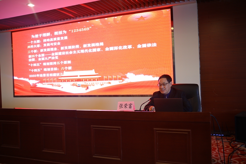 下半場,張校長從一個(gè)主題,推動(dòng)高質(zhì)量發(fā)展;兩件大事,發(fā)展與安全;三個(gè)新,新發(fā)展理念、新發(fā)展階段、新發(fā)展格局;新四個(gè)全面,全面建設(shè)社會(huì)主義現(xiàn)代化國家、全面深化改革、全面依法治國、全面從嚴(yán)治黨;“十四五”規(guī)劃堅(jiān)持五個(gè)原則;“十四五”規(guī)劃目標(biāo),六個(gè)新;2035年遠(yuǎn)景目標(biāo)建議九項(xiàng)措施等九個(gè)方面解讀了全會(huì)精神的“新征程 新理念 新格局 新愿景”。