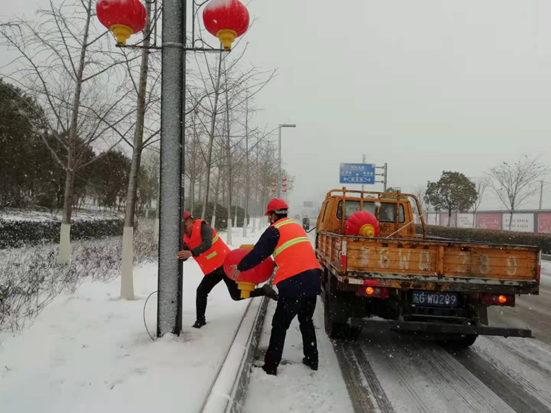 一夜的狂風(fēng)暴雪將花果山大道路上的亮化燈籠刮掉不少,該項(xiàng)工程是翔立分公司今年承接開發(fā)區(qū)市政第一個(gè)亮化工程,安裝維護(hù)質(zhì)量的好壞決定著這該項(xiàng)目工程的能否持續(xù)承接。帶著一份堅(jiān)守、心懷責(zé)任、更帶著翔立轉(zhuǎn)型發(fā)展的希望,“鐵軍”們一大早就已經(jīng)整裝待發(fā),奔赴施工現(xiàn)場收集整理燈籠。