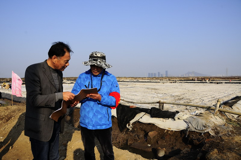▲楊善革對扒鹽作業(yè)現(xiàn)場安全生產(chǎn)提出要求