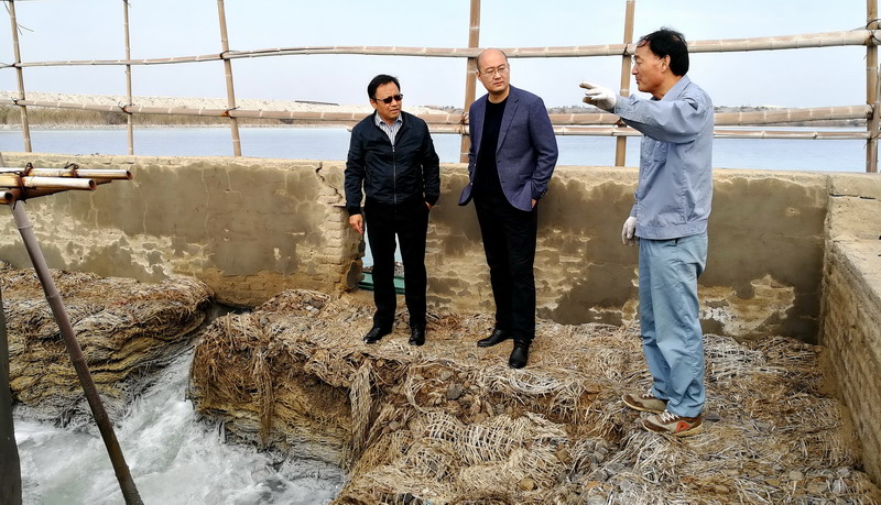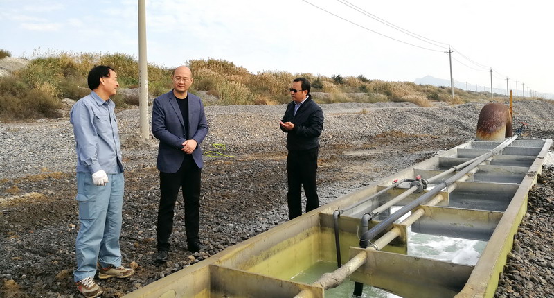 ▲柳總、卞助理在二號(hào)碴場考察氨堿上清液存量