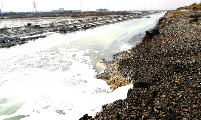 ▲鈣液原料水經(jīng)送水道引入公司復(fù)曬灘地