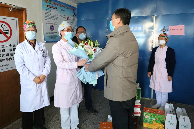 為慰問(wèn)公司職工家庭中的“戰(zhàn)疫天使”,并表達(dá)對(duì)戰(zhàn)“疫”一線醫(yī)護(hù)工作者們的敬意,2月27日上午,黨委副書記、工會(huì)主席吳衛(wèi)平代表投資公司赴市中醫(yī)院慰問(wèn)一線醫(yī)護(hù)工作者。市中醫(yī)院黨委書記李建軍、院長(zhǎng)李秀連、黨委副書記楊爽等親自接待了公司慰問(wèn)人員一行。