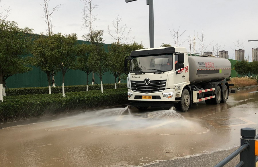 這次任務不同于以往,不僅有大范圍、高頻次的道路沖洗,更有大面積覆蓋防塵網(wǎng),大片區(qū)清掃落葉,由于時間緊迫,無法同班組長坐下來布置,王斌、陳大壹便利用吃飯時間進行討論。他們按照“重大活動有預案,重點現(xiàn)場有人跟,重要路段有人?!钡脑瓌t提前考察了出行主要路線和主要觀摩地點,對照班組人數(shù)進行細化分工,為了更加精確的將工作計劃進行落實,他們到現(xiàn)場挨個同每個班組長進行溝通協(xié)調,有問題現(xiàn)場解決、有堵點現(xiàn)場調配。