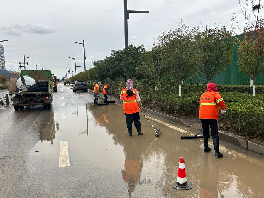 本次路線保障是今年以來最大規(guī)模任務,遵循“每個重要現(xiàn)場必有安全員,必有班組長,必有機械設備”的要求,8個保潔班組,1個垃圾清運班組,1個清掃車隊,1輛鏟車,一層管理人員共160名職工全部出動。長達3天的路線保障中,清理落葉3.7噸,車輛行駛里程超1500公里,覆蓋防塵網(wǎng)近3000平方米,期間在開發(fā)區(qū)多次的突擊檢查中都能受到高度贊賞,為大合同簽訂再贏口碑。