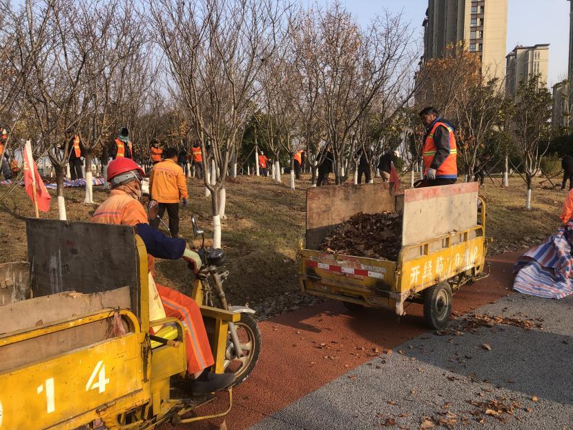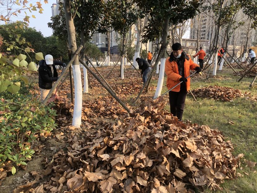 活動(dòng)現(xiàn)場(chǎng),黨員同志、積極分子分為兩撥,分別從創(chuàng)智綠園北門和東門對(duì)園內(nèi)雜草落葉進(jìn)行清除。在戴好手套,做好防護(hù)、防凍措施的同時(shí),紛紛拿著掃帚、耙子等工具,統(tǒng)籌安排、分工勞作,齊心協(xié)力,有的用掃帚掃落葉、有的用袋子裝落葉、有的用耙子摟落葉……大家忙得熱火朝天,充分發(fā)揚(yáng)不怕臟、不怕苦、不怕累的黨員先鋒本色,創(chuàng)智綠園內(nèi)處處是同志們清理雜草落葉的身影,構(gòu)成了一道亮麗的風(fēng)景線,經(jīng)過一個(gè)多小時(shí)的辛勤勞動(dòng),兩撥隊(duì)伍順利“會(huì)師”,沿途雜草落葉被清理得干干凈凈,公園環(huán)境也得到明顯改善。