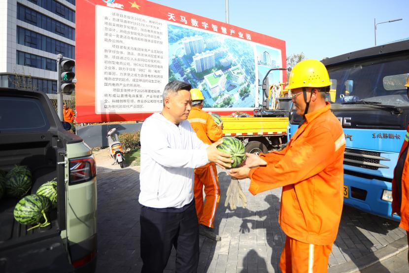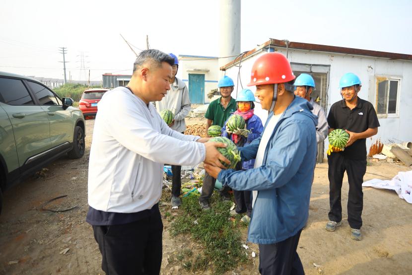 “施工現(xiàn)場送西瓜啦!”隨著夏日高溫持續(xù)攀升,為全力做好高溫天氣下職工防暑降溫工作,切實保障職工安全健康權益,自5月20日起,臺北投資公司工會精心策劃并開展“夏送清涼”主題活動。公司工會深入工程施工現(xiàn)場,將甘甜多汁的西瓜送到堅守在高溫崗位的職工手中,為他們送去陣陣清涼,這一暖心舉措收獲職工們紛紛點贊。