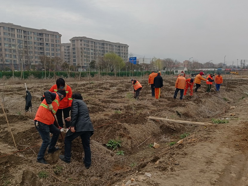 春風(fēng)拂面,大地添綠。當(dāng)下正是植樹造林的好時節(jié),益豐園林公司搶抓春季黃金期,正在80畝苗圃基地進(jìn)行果苗移植,時間緊、任務(wù)重、人手少,綠化分公司黨支部組織安排20余名黨員及生產(chǎn)骨干火速“增援”,高質(zhì)高效完成此項工作。