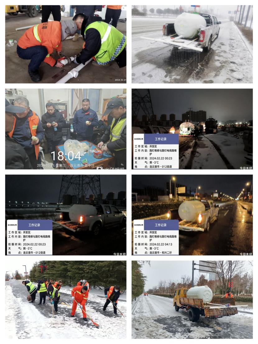 21日夜晚降雪漸止,該黨支部出動四臺車輛,按照設(shè)計好的路線多次往返于花果山大道、黃海大道、東方大道等開發(fā)區(qū)范圍內(nèi)主次干道噴灑融雪劑。在公司負責人的帶領(lǐng)下,已連續(xù)3日吃住在單位靠前指揮,參加一線掃雪除冰活動。喬以成、袁桂誠等老同志隨車同行隨時解決技術(shù)難題保障除冰工作順利進行。由于路面積雪嚴重需要一便又一便的拋灑,該黨支部又合理安排人員車輛上半夜和下半夜不間斷噴哂保障路面不結(jié)冰,全體黨員干群頂著寒風(fēng)、排隊抽取防凍液時踩著光滑結(jié)冰的路面在低溫下瑟瑟發(fā)抖,為了第二天人們的順利出行他們也是拼盡了全力,再一次展示了鐵軍的光輝形象。
