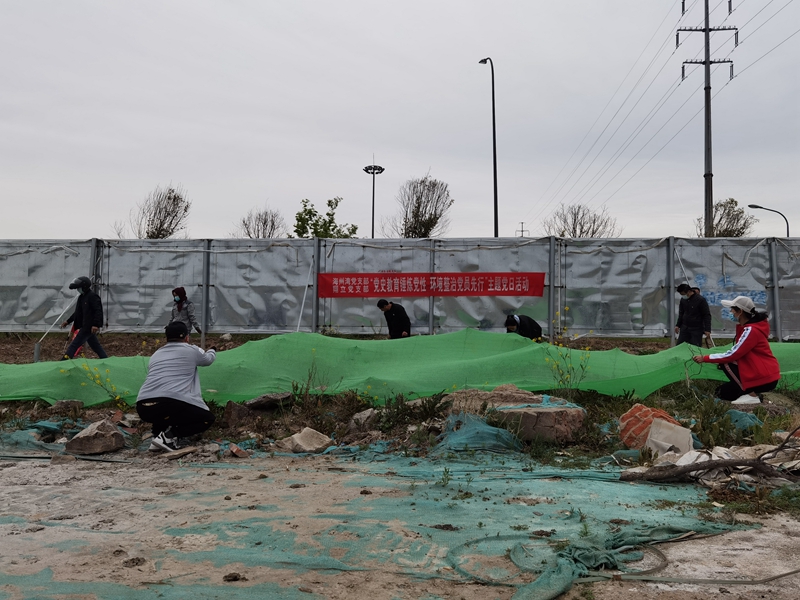 4月20日,為創(chuàng)造干凈衛(wèi)生的發(fā)展環(huán)境,豐富黨史學(xué)習(xí)教育形式,翔立分公司黨支部、海州灣公司黨支部聯(lián)合開展“黨史教育錘黨性環(huán)境整治我先行”主題黨日活動,將黨史學(xué)習(xí)和創(chuàng)衛(wèi)活動有機結(jié)合起來,組織黨員對公司的車站小灘進行環(huán)境整治,為裸露在外的土地進行防塵網(wǎng)鋪設(shè)?,F(xiàn)場風(fēng)沙彌漫,塵土飛揚,經(jīng)過兩個小時的努力,鋪設(shè)的防塵網(wǎng)有效防止了因大風(fēng)天氣造成的二次揚塵。質(zhì)勝于華,行勝于言,學(xué)史力行是明理、增信、崇德的落腳點,是開展黨史學(xué)習(xí)教育的關(guān)鍵環(huán)節(jié)。
