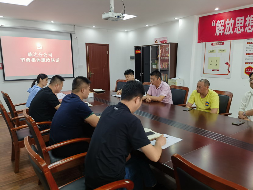 ? ? 中秋、國(guó)慶將至,為切實(shí)深化節(jié)日期間作風(fēng)建設(shè),進(jìn)一步強(qiáng)化廉潔自律意識(shí),筑牢防腐拒變防線(xiàn)。9月6日上午,臨達(dá)分公司開(kāi)展節(jié)前集體廉政談話(huà)。