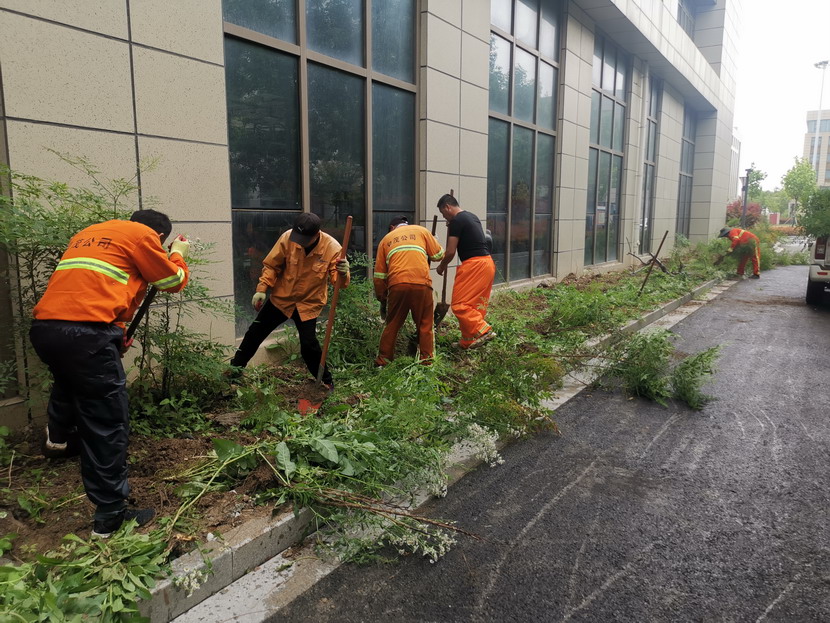 雖然下著大雨,益豐人的工作熱情依然很高漲,各項(xiàng)工作有條不紊地進(jìn)行。經(jīng)過一整天的修剪補(bǔ)植工作,大隊(duì)內(nèi)的草坪更加整齊美觀,場(chǎng)區(qū)的面貌煥然一新,讓人賞心悅目。