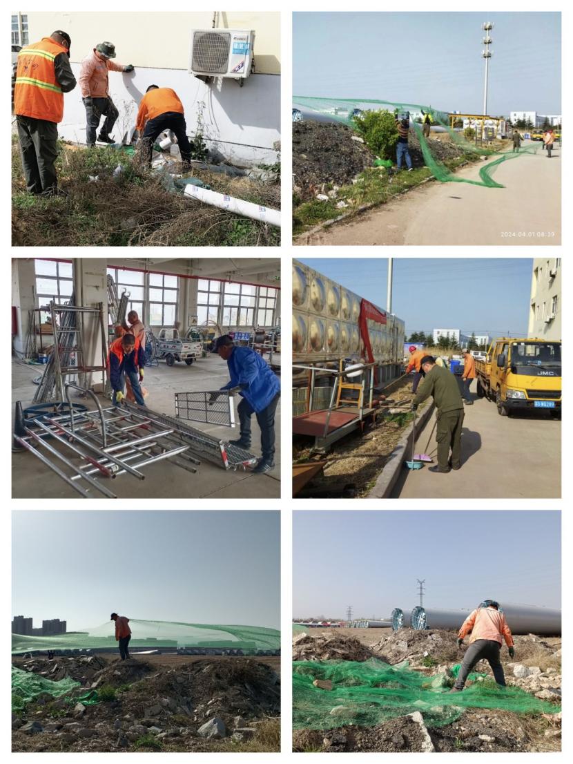 4月1日上午,該分公司各班組職工對室外露天的沙堆和石子用防塵網(wǎng)進(jìn)行認(rèn)真的覆蓋,有效的防止了揚(yáng)沙揚(yáng)塵對環(huán)境的污染影響。在車間里,職工們將散亂在各處的角手架等物品整齊的擺放在了指定區(qū)域,然后用水龍頭對地面進(jìn)行認(rèn)真的清洗,保證車間內(nèi)一塵不染的視覺效果,本次活動的開展,明顯提升了車間和周邊環(huán)境的衛(wèi)生條件,增強(qiáng)了公司的環(huán)保形象,為大干二季度營造了良好的工作環(huán)境。