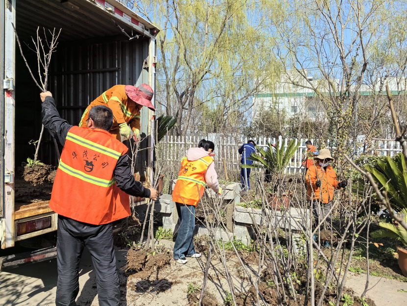 27日上午,當(dāng)所有的果樹苗都運(yùn)達(dá)80畝苗圃基地后,綠化分公司鼎力幫助,抽調(diào)20余名經(jīng)驗(yàn)豐富的能工巧匠,與苗圃養(yǎng)護(hù)班組共同投入到這場果樹苗栽種工作的熱潮中。他們仔細(xì)地將每顆果樹苗放置在預(yù)定的位置上,輕輕覆土,并用手壓實(shí),確保土壤能夠充分包裹住樹根,為幼苗提供充足的養(yǎng)分和利于扎根生長的良好環(huán)境。在栽種完畢后,大家又忙碌地澆灌第一輪水肥。他們希望這些新栽種的果樹苗能夠得到充足的水分和營養(yǎng),以快速恢復(fù)生長。