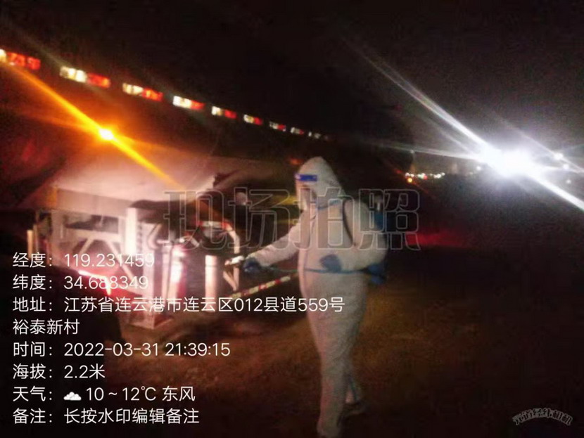 3月31晚8點48分,海州灣公司組織人員對鹽城來企的鈣液運輸車輛進行消殺,對駕駛人員查驗蘇康碼、行程碼、核酸記錄,登記到廠時間、車牌、始發(fā)地、所運物資等一系列車輛運輸信息,并拍攝包含時間、車牌、封條的全方位照片上傳閉環(huán)管理系統(tǒng)。
