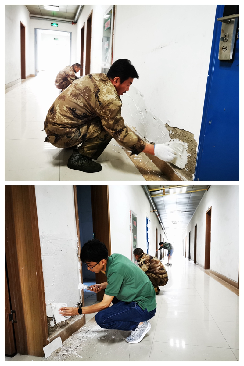 美多利公司綜合辦公樓一樓由于空氣潮濕,墻體大多墻皮剝落,不僅影響美觀,還會(huì)污染環(huán)境,給公司形象造成一定影響。今天上午,為美化園區(qū)辦公環(huán)境,優(yōu)化園企職工的辦公體驗(yàn),美多利公司全體職工“擼袖上陣”,鏟除綜合辦公樓墻面剝落的墻皮,并重新涂刮墻面石膏,使原本斑駁的墻面煥然一新。