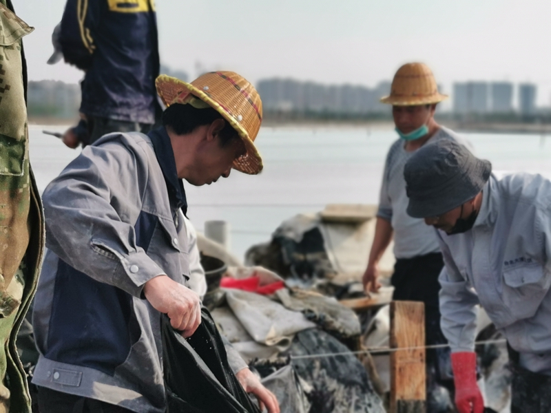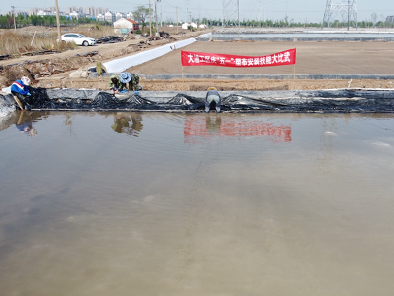 “比武”現(xiàn)場一片忙碌,各位“比武勇士”都是鹽灘的行家里手,共28名,分成4組,每組7人,在規(guī)定兩小時內(nèi)完成塑布安裝。“比武”過程中,每組成員通力合作、一絲不茍,從嚴控制好每一道安裝工序和環(huán)節(jié),拼速度、比規(guī)范,確保安裝的塑布在使用中得心應(yīng)手。