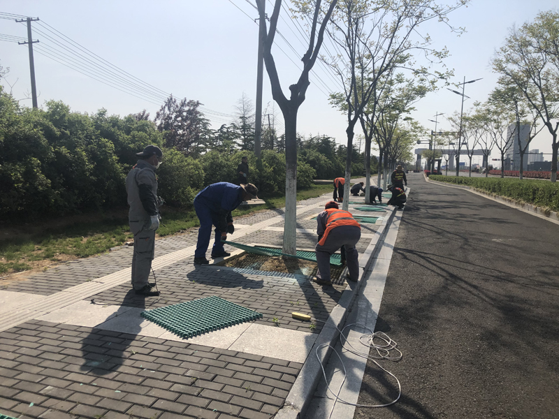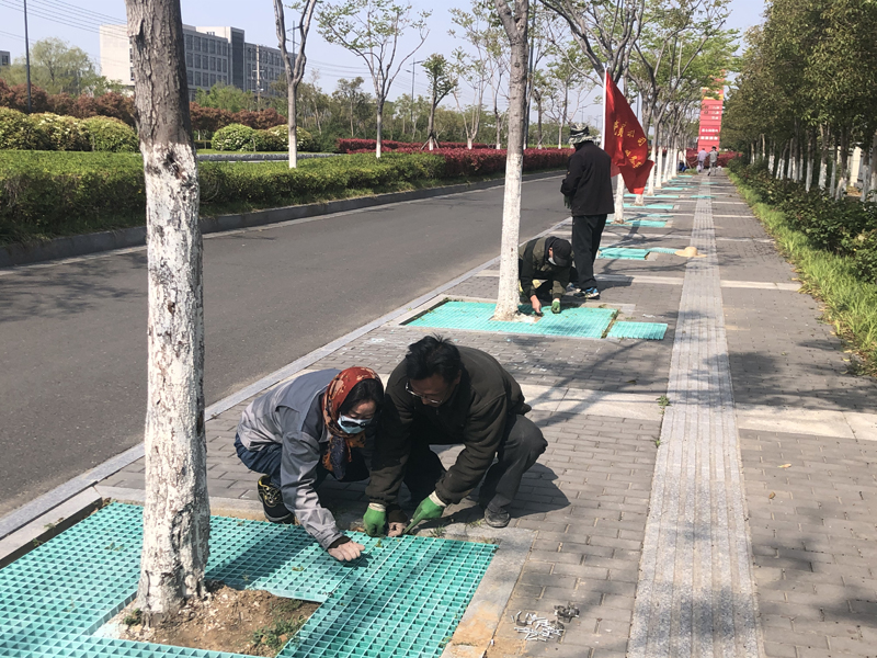 本次志愿奉獻活動內(nèi)容是對黃海大道兩側(cè)樹池進行隔柵安裝工程。在接到華茂公司的工程項目后,得知要在3天之內(nèi)對300座樹池進行作業(yè),各班組在辦公群了解到此項目的工期緊且工程量大時,自發(fā)組織了一場志愿奉獻活動。第二天早晨8點,26人的身影出現(xiàn)在了黃海大道,炎炎烈日下,我們分成4個小組,有的手握鐵鍬進行填土、有的負責投放隔柵、有的手拿切割器進行切割、有的進行安裝作業(yè),分工明確、井然有序,充分發(fā)揚了“四拼”工作作風。