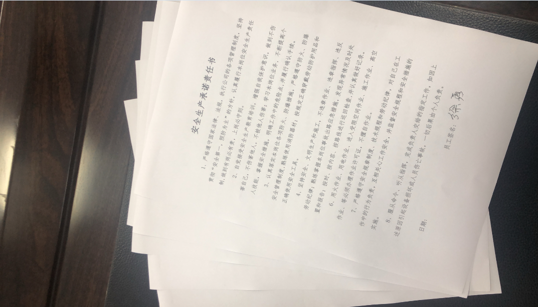會后,逐步將安全承諾書和安全知識答卷發(fā)放至每個班組、灘頭,共計28份。