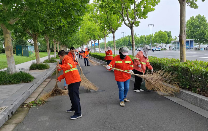 集中奉獻(xiàn)“熱火朝天”。學(xué)習(xí)結(jié)束后,保潔、瑞南支部近20余名黨員,匯集于徐圩新區(qū)核心區(qū)域上海路、南京路輔道現(xiàn)場(chǎng),開展人工清掃道路積土,樹葉集中奉獻(xiàn)勞動(dòng)。勞動(dòng)現(xiàn)場(chǎng),大家無懼七月高溫炎熱天氣,揮動(dòng)手中大掃把,迅速清掃落葉,雨水沖涮下來的綠化帶中泥土長(zhǎng)達(dá)2000多米長(zhǎng),打包轉(zhuǎn)運(yùn)各類垃圾30多包,看著整潔黑色路面呈現(xiàn)眼前,隊(duì)員們情不自禁露出開心的笑容。(楊波 金知青)