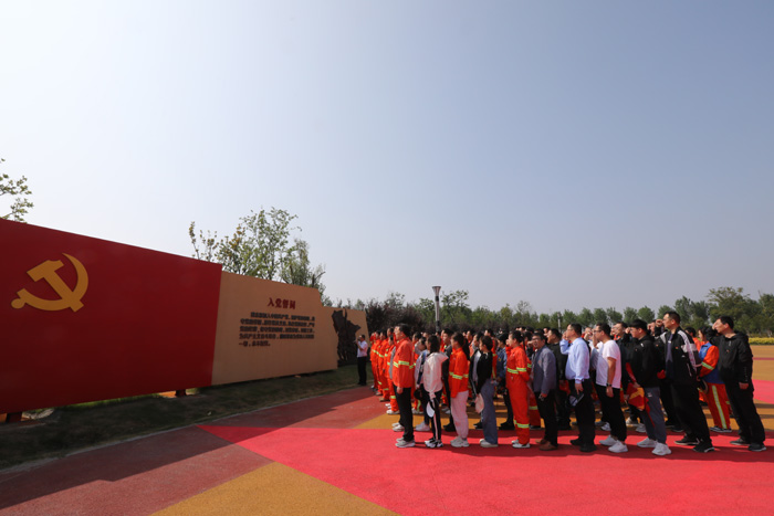 ????? 6月6日,投資公司黨委在張圩湖公園開展“為黨旗添彩 替黨徽增光”黨員奉獻(xiàn)日活動,全體黨員及入黨積極分子共100余名參加活動。