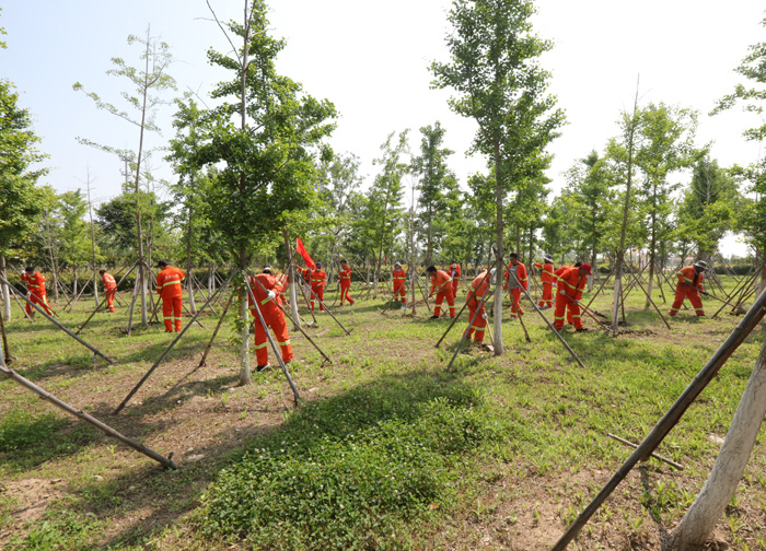 ????? 活動分為四組進(jìn)行,四組黨員突擊隊跟隨引導(dǎo)員的腳步到達(dá)各自片區(qū),進(jìn)行綠化帶雜草清除作業(yè)。在各組支部書記的帶領(lǐng)下,勞動中人人做表率,個個干勁足,有條不紊互相配合,一抹抹橘色在清新草色的襯托下格外美麗。