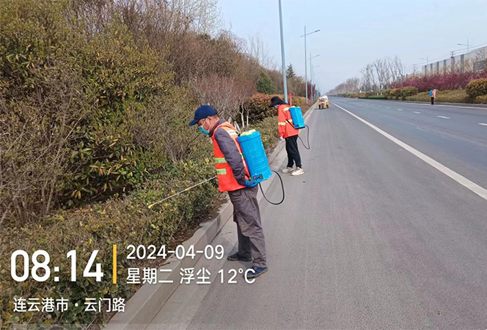強(qiáng)化修剪重養(yǎng)護(hù)。該分公司以防為主,防治結(jié)合,全面開展春季病蟲害防治工作,對整個(gè)園區(qū)綠植面積 62萬平方進(jìn)行全面施藥。序時(shí)開展園區(qū)綠化帶除草工作,四月上旬對園區(qū)內(nèi)云港路,祥和路,金港路綠地雜草、落葉清理,清理面積25萬平方。積極打造綠化養(yǎng)護(hù)樣板路。突出祥和、云港重點(diǎn)路段,綠化2班全面對祥和3期利用4天時(shí)間對所轄綠化帶采取人機(jī)結(jié)合全面除草,并根據(jù)苗木的長勢,在正常養(yǎng)護(hù)工作的同時(shí),開展春季病蟲害防治。定期安排補(bǔ)水,日澆水量50余立方,有效的促進(jìn)苗木生長,全面掀起大干二季度工作熱潮。(劉永)