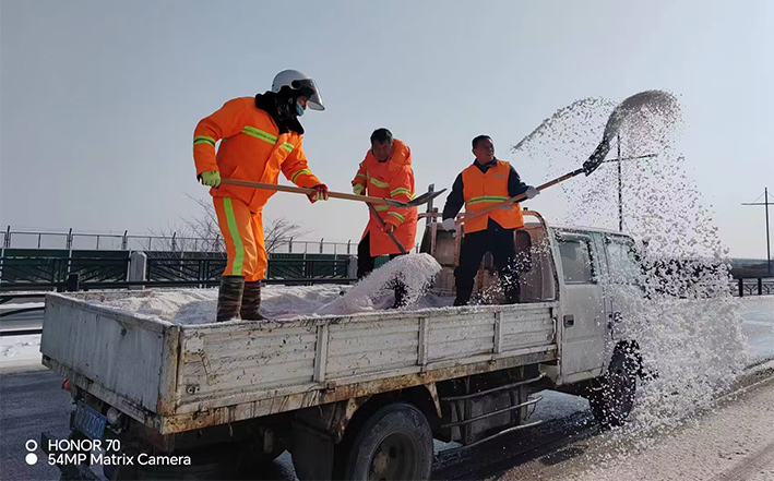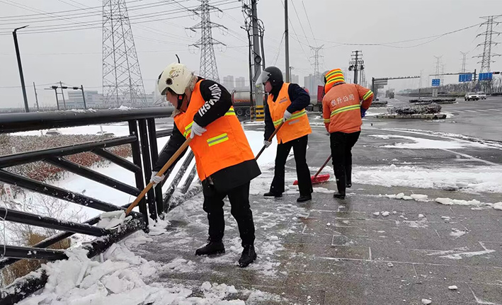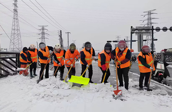 在白雪皚皚的雪地里,身穿橘黃工作服的保潔工人就是最美的點綴,他們頂著風雪吹打臉頰,兩人一組、三人一對,配合默契,揮動手中鐵銑,用力拋灑融雪鹽斤80多噸,10余車。道路橋粱兩側(cè),人行輔道邊上,公司上下齊心協(xié)力,9名班長在公司統(tǒng)一調(diào)配下,帶領(lǐng)班組人員,人工清除大小橋梁兩側(cè)積雪30多座,人行輔道長達3000多米長,站臺、叉路口積雪100多處,為保障恢復雪后新城環(huán)境整潔而努力工作。大型清掃設(shè)備駕駛員全員齊上陣,安全行車裝運融雪鹽斤里程達200多公里,工作時長10個多小時,安全操作鋤雪機械清理張圩互通引橋,埒子口大橋等路段長達5000多米長,有力彰顯機械破冰、除雪強大功能。(楊波)