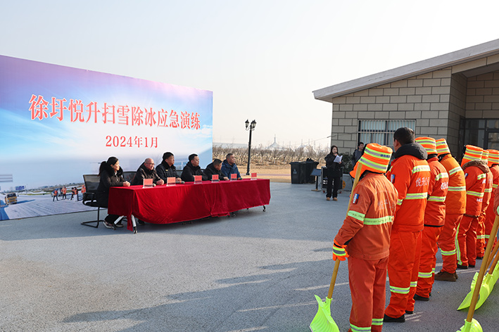 冬季是冰凍、降雪等自然災害高發(fā)季節(jié),為切實做好冰雪災害性天氣的應對及突擊保障工作,搶險救災減少損失,1月4日下午,悅升公司聯(lián)合徐圩城建公司及社事局、徐圩環(huán)衛(wèi)所在上海路進行掃雪除冰應急演練。徐圩城建公司副總經理肖堅,徐圩環(huán)衛(wèi)所所長郁紅衛(wèi),徐圩新區(qū)社會事業(yè)局環(huán)衛(wèi)科科長趙國慧、悅升公司董事長馮如師、總經理徐習華及各公司相關負責人參與本次演練。