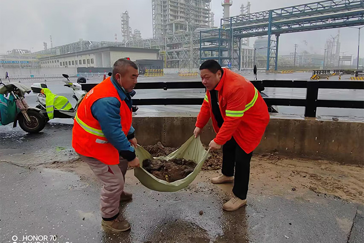 12月13日夜里,受北方冷空氣影響,徐圩地區(qū)普降中雨。為保障石化園區(qū)冬季道路周邊環(huán)境整潔靚麗,園區(qū)近10余名黨員先鋒無(wú)懼風(fēng)雨,樂(lè)于奉獻(xiàn)堅(jiān)守道路最前沿,風(fēng)雨中彰顯黨員敬業(yè)高尚風(fēng)采。