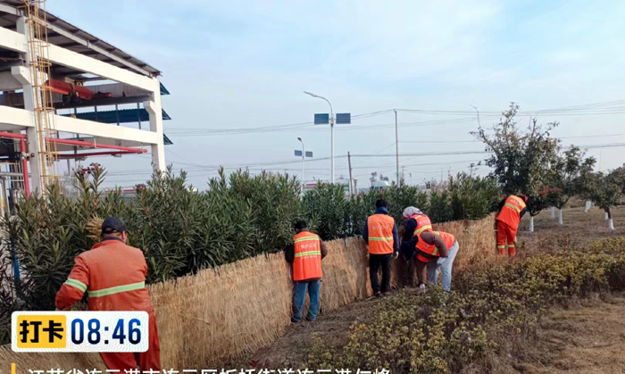 風(fēng)障防寒加速進(jìn)行。該分公司采購草簾500余個,對金港路、泰和路夾竹桃等不耐寒綠植精心呵護(hù)。確保低溫植株不被凍傷,不出現(xiàn)大面積凍害現(xiàn)象。目前已圍草簾300余個。