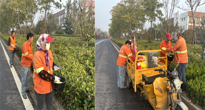 ? ? ? 工作中,班長李洪利、副班長李明春,帶領綠化班組30余人,對云港路、祥和路仁和路,進行施肥作業(yè)。“園林衛(wèi)士”手拿施肥工具,2-3人為一小組,采用徒步拋灑方式進行作業(yè),縱三路的側(cè)分帶雪松,因長勢不良土壤環(huán)境因素,為重點施肥對象。云港路路線較長,采取分段作業(yè),重點突破。經(jīng)過一天的忙碌,完成既定路段的施肥任務。