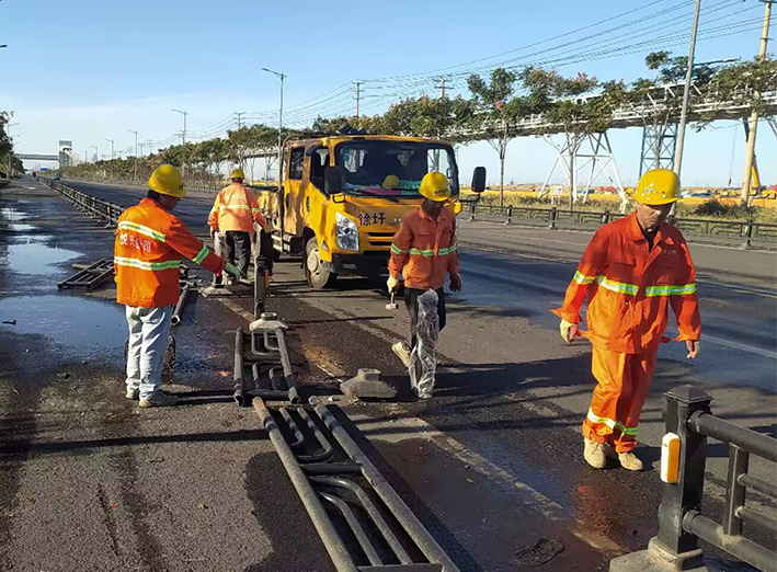 自1023日以來,道路養(yǎng)護(hù)人員的腳步?jīng)]有停歇,依舊是早出晚歸,默默堅(jiān)守在崗位上。為更快解決道路養(yǎng)護(hù)過程中存在的薄弱環(huán)節(jié),市政分公司把每條道路細(xì)化到具體的責(zé)任組,實(shí)行定人、定路段、定標(biāo)準(zhǔn),全力以赴做好抓差補(bǔ)缺,尤其要做好綠化帶里外旮旯等處窨井巡查與維護(hù)工作,不留死角。截至目前,已完成核心區(qū)、石化區(qū)等路段瀝青路面修補(bǔ)約90平方米,雨水井篦維修更換33套,更換窨井蓋14個(gè)、提升窨井3座,補(bǔ)充隔離欄示廓反光標(biāo)146個(gè),應(yīng)急搶修受損道路隔離護(hù)欄78米、調(diào)整、整平、扶正路牙石約126米。