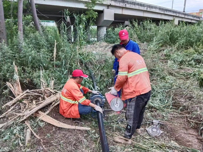 ? ? ? ?供水組接到任務(wù)后,積極采取措施,切實(shí)解決用水問(wèn)題。考慮到原管網(wǎng)承壓脆弱,為避免造成水資源的浪費(fèi),針對(duì)性對(duì)加水點(diǎn)上游老化管道進(jìn)行更換改造。在施工過(guò)程中,由于安裝管道在野外作業(yè),施工環(huán)境較差,隊(duì)員要在一人高蘆柴地里來(lái)回穿梭,進(jìn)行管道布設(shè)、管道熔接,加上室外溫度達(dá)到35度以上,灼熱感、蚊蟲叮咬讓隊(duì)員們相當(dāng)難受,隊(duì)員季小東、劉佃寶脖子已經(jīng)出現(xiàn)紅腫,率先領(lǐng)到“紅包”。供水班組全體人員埋頭苦干,毫無(wú)怨言,克服天氣及環(huán)境不利因素影響,搶時(shí)間、抓進(jìn)度,經(jīng)過(guò)3日全力奮戰(zhàn),順利完成此次管道更新改造任務(wù)。此次安裝作業(yè),已對(duì)326米老舊管道進(jìn)行了更換,加裝直徑100閘閥2個(gè)、直徑100水表1只、100*65型地上式消火栓1個(gè)。(楊維軍)